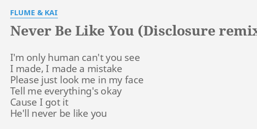 NEVER BE LIKE YOU (DISCLOSURE REMIX)" LYRICS by FLUME & KAI: I'm only human can't...